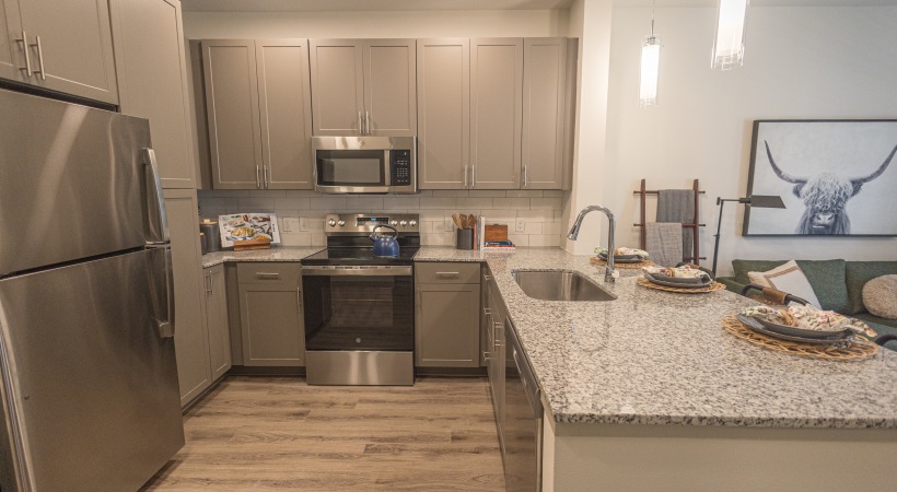 • Kitchen with stainless steel applieances