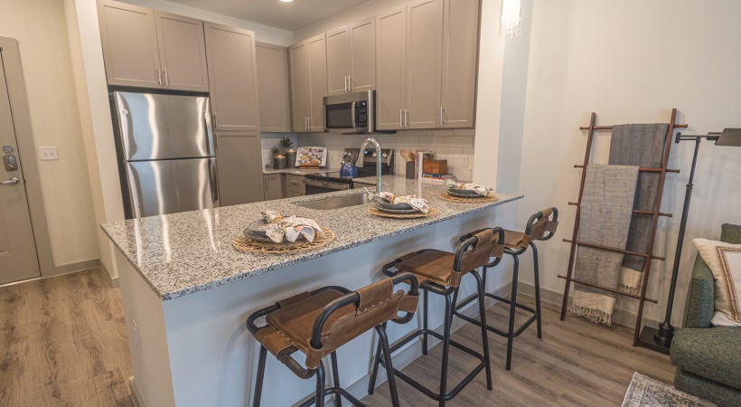 • Kitchen with barstools