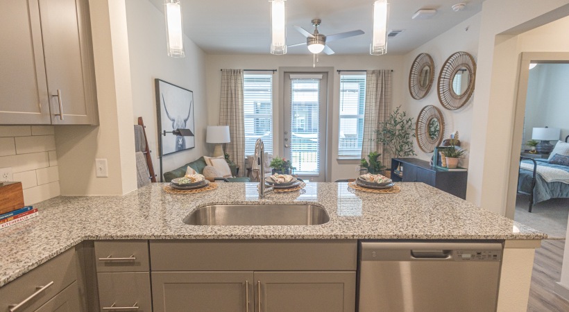 • Kitchen sink with granite countertops
